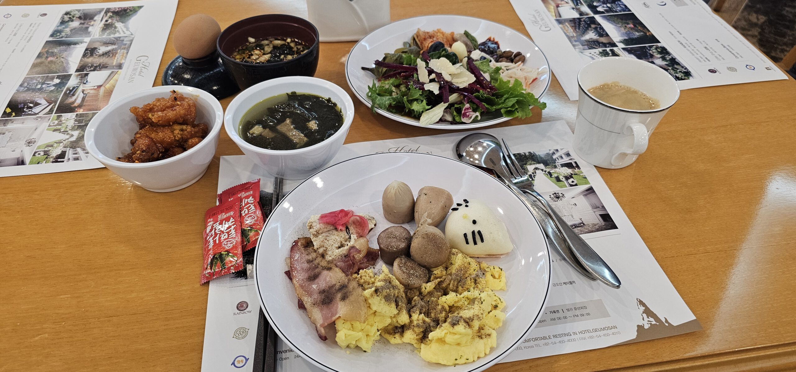 In meinem Stammrestaurant (wo ich der „Drei-Bärchen-Mann“ bin) will ich im Hotel anrufen lassen, denn vorgestern lag der Preis für ein Zimmer im „Healing“ bei 108 Euro! Ich hatte bem letzten Mal 50.000W bezahlt für ein Einzelzimmer. Da entdecke ich bei Booking für 49.700W ein Doppelzimmer mit Frühstück! Mehr Platz und (frühes 7-8:30Uhr) Essen! Da nehme ich natürlich dankend an! Eigenartig der Preis vorgestern. Last minute-Glück? Schön, wenn man dann noch eine Option in der Hinterhand hat.
