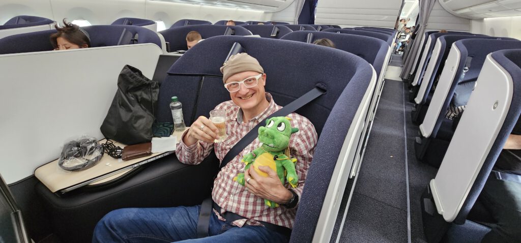 Aber zum Beispiel in die Lufthansa, bzw. Asiana Lounge am Flughafen. Es gab leckeren Salat und wir haben noch einen Viertklässler getroffen, der uns einen guten Flug und schöne Ferien wünschte. Wie nett!